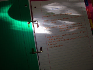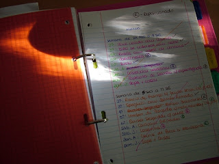 A seguir tenho uma cartolina com uma espécie de índice, para saber a quantas ando. Daqui a uns tempos se calhar já não preciso disto, mas por agora dá jeito.