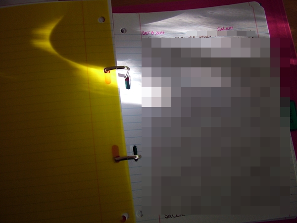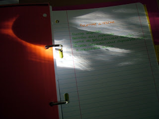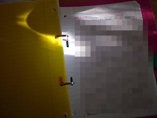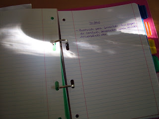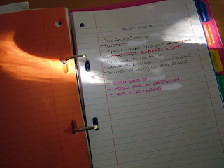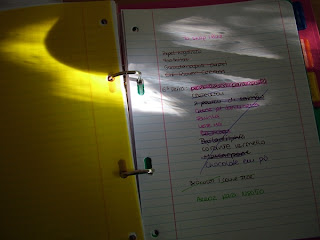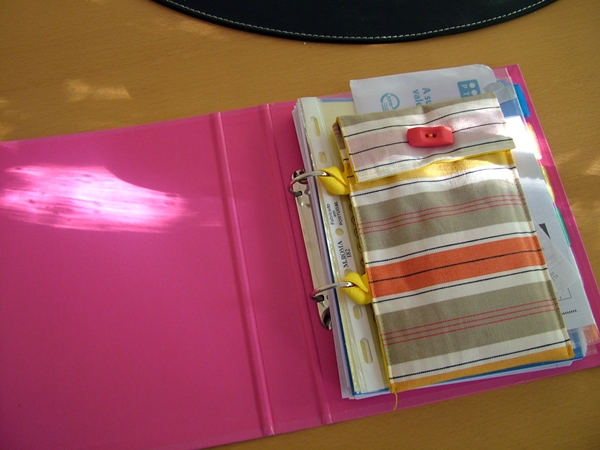 Então vamos lá. Uso um simples dossier A5, comprado na Staples. Não o decorei, nada. É simplesmente um dossier cor-de-rosa (cor de que me vou fartar daqui a uns tempos, mas adiante).