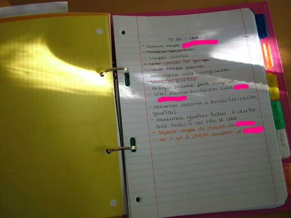 To do - Casa: aqui anoto tudo o que quero fazer em casa. São coisas a médio prazo, que são para ir fazendo: limpezas, arrumações, compras "grandes", etc.