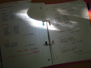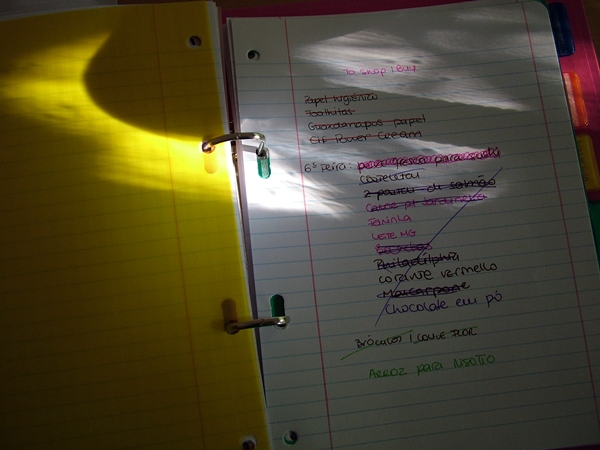 Money Log: aqui ainda está a versão antiga. Aponto todo o dinheiro que gasto. Nunca tinha feito isto na vida e é, de facto, surpreendente perceber para onde é que vai o dinheiro. Como o meu marido não faz o mesmo, vai ser impossível seguir o rasto de todo o nosso dinheiro. Mas como sou eu que faço as compras e que giro as contas, a coisa vai andando controlada. Já percebi, por exemplo, que gasto demasiado em supermercado. E este money log ajudou-me a reduzir algumas despesas supérfluas, nomeadamente... revistas.
