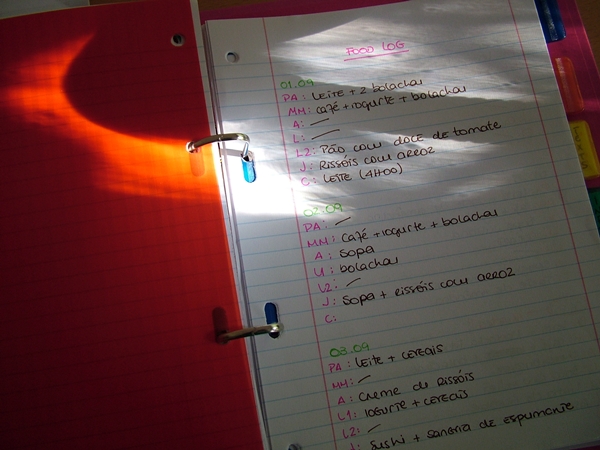 Food Log: ando há uma vida em dieta. Ando há uma vida a boicotar dietas. Por isso achei importante anotar tudo o que como (e anoto tudo mesmo!). Isso permite-me perceber exactamente onde errei... só falta servir para eu evitar fazer asneiras. É o próximo passo. Tal como aconteceu com o money log, criei um template de excel, mas aqui ainda está a versão antiga.