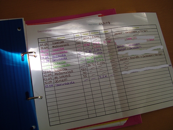 Exercise Log: outro apontamento importante para mim. Evita-me não saber o que responder quando me perguntam quando é que corri pela última vez! Anoto tudo: os kms percorridos, onde foi, o tempo que durou, os abdominais que fiz, o número de repetições, etc. Se eu corresse mesmo muito, isto também me permitia saber quando reformar os ténis (que só devem ser usados durante cerca de 800kms. Mas como me falta muuuuito para os 800kms, passemos adiante!).