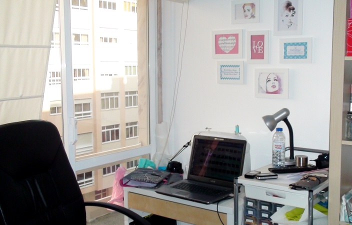 Mudei o escritório/atelier/sala de costura. E agora trabalhar ao lado da janela é todo um mundo novo. Música brasileira todó dia a berrar-me aos ouvidos (ai se eu te pego, ai, ai, assim você me mata... - really??). Gente a gritar de janela para janela. Buzinas. Aceleradelas. E luz, muita luz. E é bom!