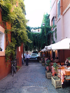 Roma:Uma viela, de entre muitas por onde andámos. Ficámos alojados no Bairro Alto lá do sítio (aka, Trastevere). Muita vida nocturna, muito bar, muito restaurante, muita animação e, ao contrário do que seria de esperar, muito sossego.